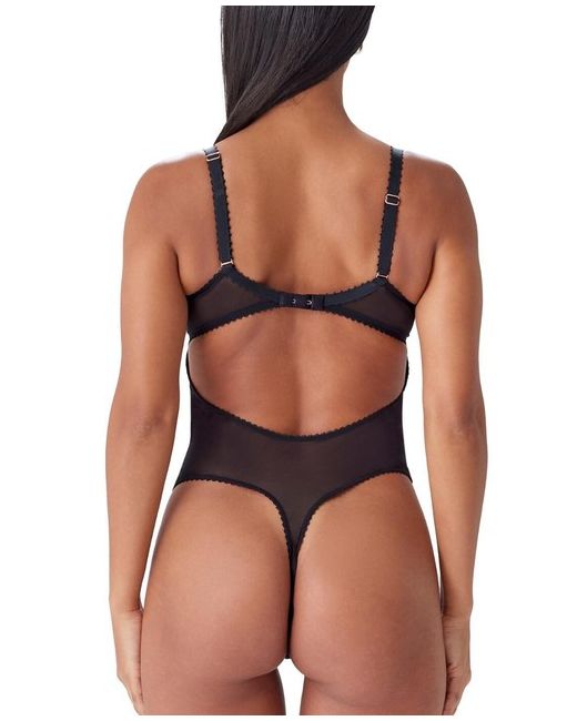 Look dazzling and make a bold impression with the Gossard VIP Taboo bodysuit! Crafted from a sheer yet supportive fabric, this bodysuit has been designed to hug your body perfectly. With beautiful embroidery on the cups and an open back, you are sure to make a statement and turn heads no matter where you go. It also has a golden-plated Gossard signature tag that adds an extra layer of sophistication to the piece. Plus, the scalloped edges give this bodysuit a soft yet modern touch and its shimmery highlights add a glamorous and playful element. Additionally, it provides minimal rear coverage while its adjustable shoulder straps offer maximum customization when it comes to fit.