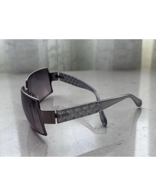 These CHANEL women's sunglasses are a genuine designer piece with a vintage rectangular style. Made in Italy, the metal frame, plastic sides features diamonte details, adding a touch of luxury to the grey tinted plastic lenses that provide UV400 protection. Perfect for adding a touch of designer glamour to any outfit, these sunglasses are a stylish and timeless accessory for women.