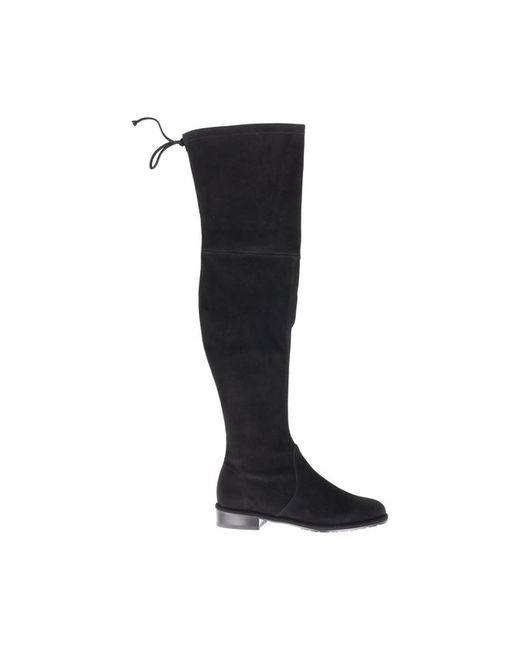 Elevate your style with these STUART WEITZMAN Lowland boots, crafted from premium suede. These over-the-knee boots feature a tie closure and flat heel for all-day comfort. Ideal for formal occasions, they are perfect for spring and summer seasons. Made in Spain and available in size 35.