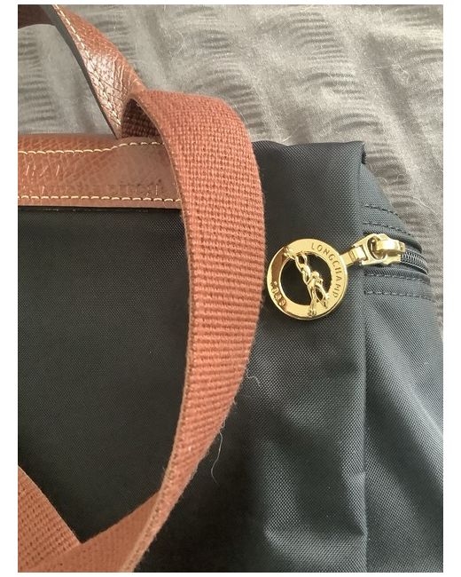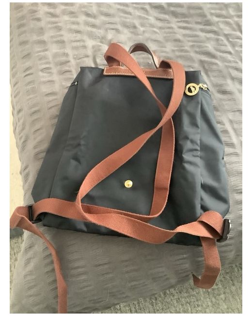The Longchamp black nylon backpack with leather trim is a stylish and practical choice for women. The small size makes it perfect for carrying essentials while the brown leather handles add a touch of luxury. The black nylon exterior and black polyamide lining give it a sleek and modern look. This backpack is both functional and fashionable, making it a versatile accessory for any outfit.