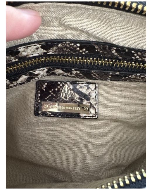 The Amanda Wakeley Natural python baguette Shoulder bag is a stylish and versatile accessory for any occasion. Made from luxurious leather with a striking animal print design, this oval-shaped shoulder bag features a magnetic closure and an adjustable black leather strap. The gold hardware accents add a touch of sophistication, making it perfect for formal events, workwear, or casual outings. The black cotton lining provides a sleek contrast to the natural exterior colour, while the snake finish adds a trendy twist to this designer piece from the Amanda Wakeley brand.