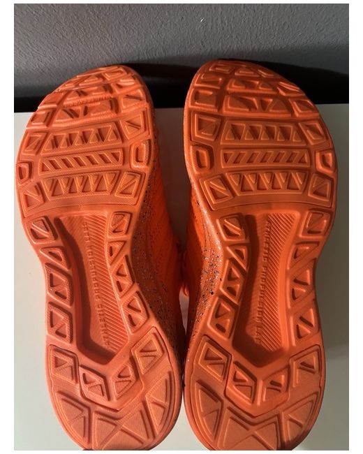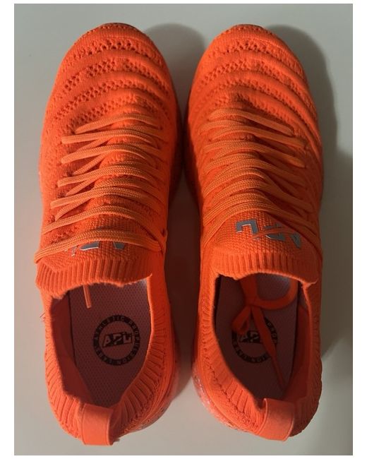 The APL Athletic Propulsion Labs Techloom Wave trainers in size UK5, EU38, are brand new and never worn. These stylish sneakers feature a low top design with a lace-up closure, perfect for the summer season. The vibrant orange colour adds a pop of personality, while the rubber outsole ensures durability and comfort. Whether hitting the gym or out for a casual stroll, these APL trainers are a fashionable and practical choice for women on the go.