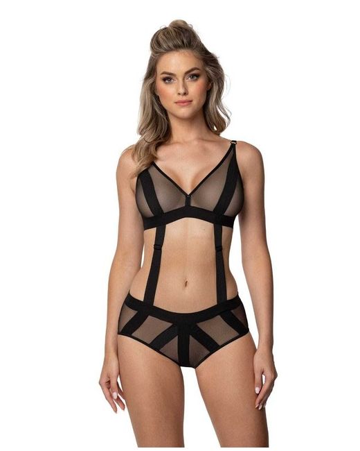 Elevate your lingerie collection with the Roza Pasomela Soft Cup Bra in Black! This showstopper bra features a chic sheer mesh design, complemented by bold black lines that exude confidence. The modern triangle cups combined with adjustable straps ensure both comfort and style. Enjoy versatility with removable vertical straps available separately, allowing you to switch from a minimalist look to a daring harness-inspired style. Perfectly crafted from 85% polyamide, 10% elastane, and 5% cotton, this bra pairs beautifully with your favorite thong or brief for a stunning set. Experience effortless elegance today!.