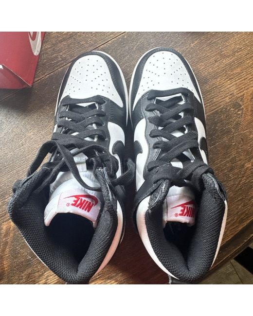 The Nike Men's Dunks High Panda UK 4.5 in Black/White is a stylish and casual trainer perfect for summer occasions. Featuring a lace-up closure and a leather upper, these sneakers offer both comfort and durability. With the iconic Panda theme and Nike Dunk design, these shoes are sure to make a statement. Whether hitting the court or simply hanging out, these black Nike Dunks are a versatile and fashionable choice for any man's wardrobe.