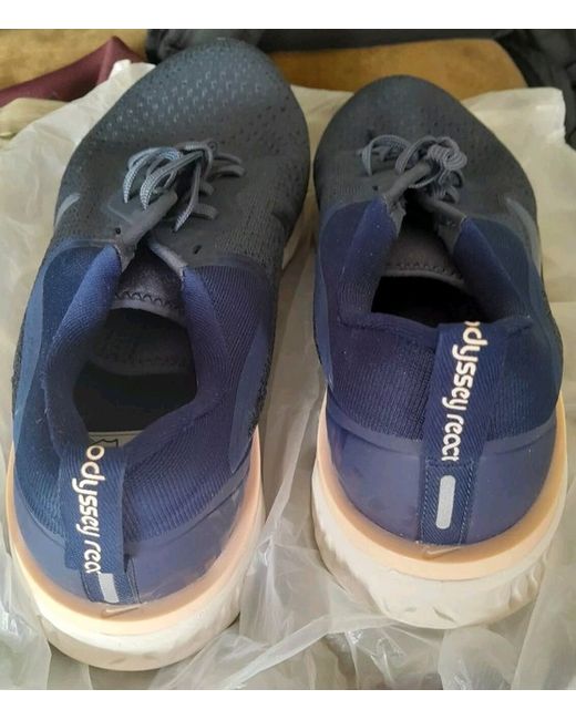 Add some style to your step with these navy Nike Odyssey React sneakers in a size UK 11 for men. The lace-up closure ensures a secure fit while the comfortable design makes them perfect for any occasion. These trainers feature the Nike product line with a sleek design that is perfect for adding to your Men's Shoes collection. The brand, Nike, is well known for their quality products, so you can trust that these sneakers are durable and reliable. Whether you're hitting the gym or running errands around town, these Nike Odyssey React sneakers will keep you looking stylish and feeling comfortable all day long.