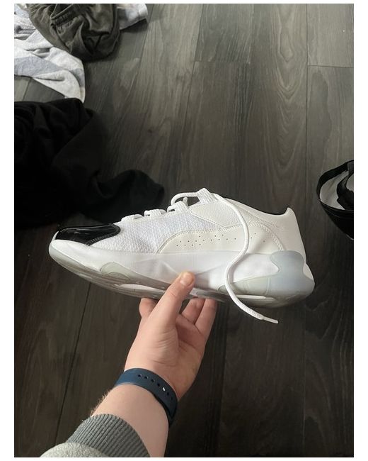 Step up your sneaker game with the Jordan 11 CMFT, a modern take on a classic design. These trainers come in a crisp white colour, complemented by the iconic Jordan logo, making them a versatile addition to any wardrobe. Ideal for casual wear, their lace-up closure ensures a secure fit whether you're hitting the streets or just enjoying a laid-back day. Sized at UK 10 / US 11, these sneakers are designed for men who appreciate both style and comfort. Part of the revered Air Jordan product line, they boast a sleek silhouette without custom modifications, keeping the focus on the timeless appeal and quality craftsmanship that Jordan is known for.