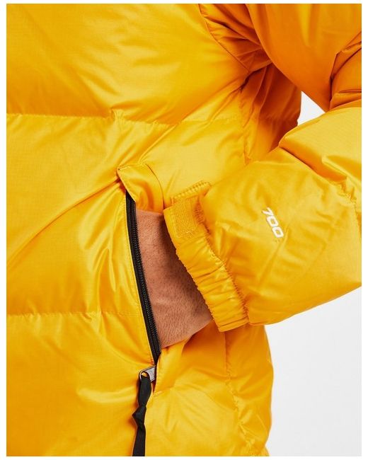 Reach the peaks in style with this men's Nuptse 1996 Jacket from The North Face. In a Summit Gold colourway, this slopes-to-street coat is made from recycled nylon ripstop fabric with a Non-PFC Durable Water-Repellent finish to keep you dry. Inside the fabric, 700-fill goose down packs your heat in without the extra weight. It features a full zip fastening and a stowable hood in the raised neckline, while elasticated cuffs have Velcro straps and the hem has a bungee cord for the perfect fit. Packable into its own pocket, this jacket is finished with zippered pockets and signature Simple Dome logos. Machine washable.