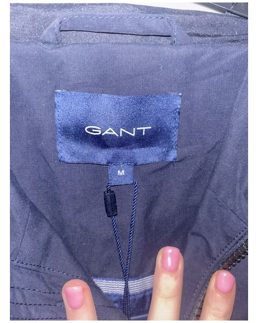 This GANT men's jacket in navy blue, size M, is a stylish windbreaker suitable for casual occasions. The jacket features a zip closure and polyester insulation for added warmth. It is adorned with the GANT logo for a touch of brand detail. This jacket is perfect for walking or everyday wear, offering both functionality and fashion in one versatile piece.