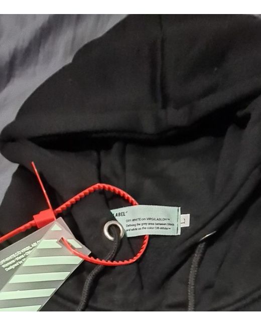 This Off White hoodie in size L is a stylish and comfortable addition to any man's wardrobe. Made from cotton with a black colour, this pullover hoodie features long sleeves and a hooded closure, making it perfect for the winter season. The logo accents add a touch of personalisation to this classic piece, which is machine washable for easy care. Ideal for walking or casual wear, this hoodie from the popular brand Off-White is a must-have for any man looking for a versatile and trendy activewear option.