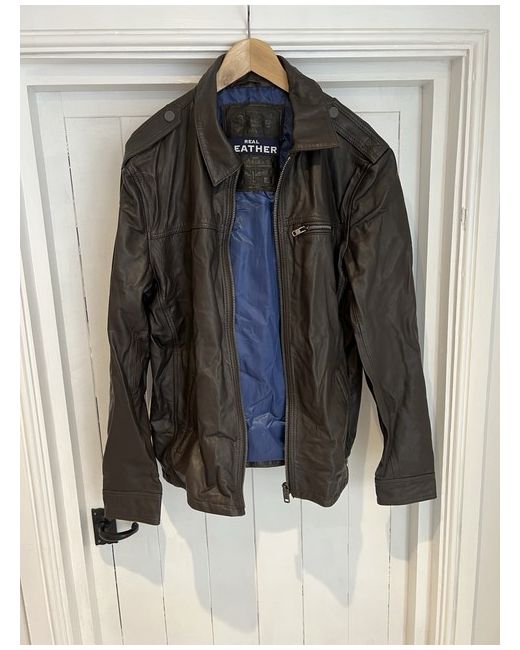 Men's Brown Dark Leather Jacket XL