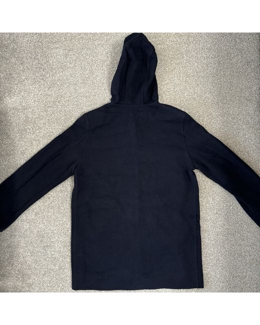 Navy Blue Burberry jacket with hood that has Burberry pattern design on the inside and shoulder pads. Condition is like new with little defects such as holes in pockets. Size says 44 and looks like a Medium-to-Large size. Don’t hesitate to contact me for any questions and offers!