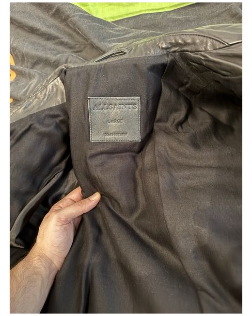 Embrace the timeless appeal of a genuine leather jacket from AllSaints, crafted to perfection in a classic black shade. This men's size large jacket combines the edgy biker aesthetic with a motorcycle jacket silhouette, offering a seamless blend of style and practicality. The short jacket/coat length adds to its contemporary feel, making it a versatile addition to your wardrobe. Constructed with the finest leather, this piece embodies the brand's commitment to quality and durability. Its design is rooted in the biker theme, featuring a regular fit that ensures comfort without compromising on a sleek silhouette. Made in India, this jacket is a testament to AllSaints' global craftsmanship and attention to detail.