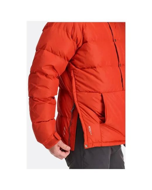 Rab® Fluorocarbon free Hydrophobic Down developed in conjunction with Nikwax®. Down filled high collar. YKK® VISLON® side zip opening with insulated zip baffle. YKK® VISLON® front zip with insulated zip baffle and chin guard.