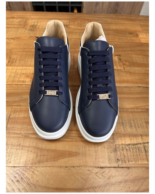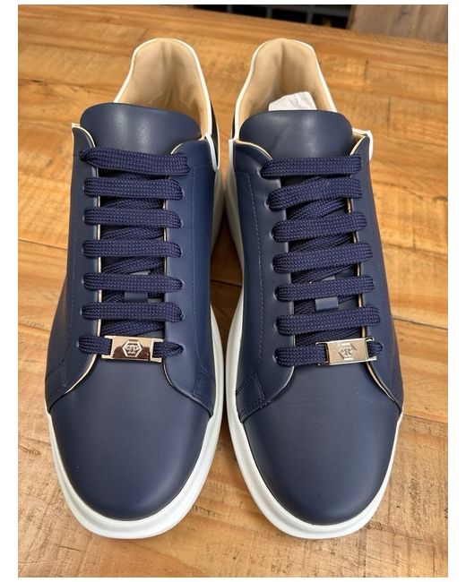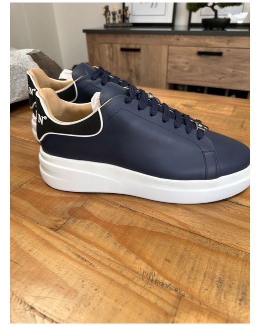 These men's Philipp Plein trainers in size 12 are a stylish choice for casual occasions during the spring and summer seasons. Featuring a low-top design with a lace-up closure, they are made from leather with a rubber outsole for durability. The blue colour and sleek sneaker style make them a versatile option for everyday wear, adding a touch of luxury to your wardrobe. Perfect for men looking for a modern and comfortable shoe option from a reputable brand like Philipp Plein. RRP £300
