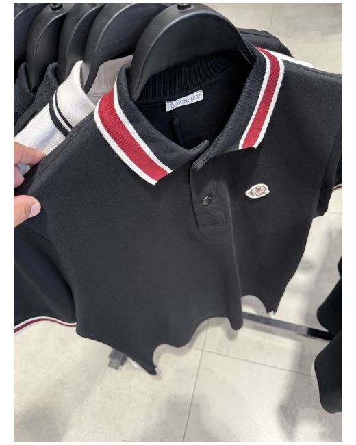 The Moncler T-Shirt is a designer piece perfect for the summer season. Made from cotton jersey fabric, this short-sleeve polo t-shirt in black features the iconic Moncler logo as accents. With a regular fit and size 2XL, this machine washable t-shirt is a stylish addition to any man's wardrobe, showcasing the brand's signature design with a contemporary twist. Made in Italy, this t-shirt offers a comfortable and fashionable option for casual wear during the warmer months.