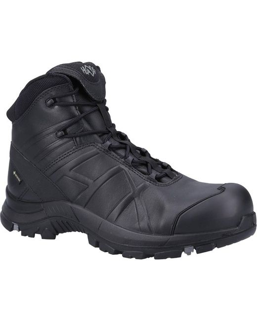 The Black Eagle Safety boots offer lightweight protection and all-day comfort, with S3-level safety extending up to the ankles. Designed for high-performance and completely metal-free, making them ideal for security-sensitive environments. The boots feature a composite toe cap that meets the highest safety standards, while the puncture-resistant, waterproof, and shock-resistant construction ensures superior protection. The innovative rubber sole provides excellent slip resistance and grip on a wide variety of surfaces, keeping you safe from skidding. Thanks to the breathable three-layer GORE-TEX membrane, your feet remain dry and comfortable all day. The textile upper, made from finely processed microfiber, wicks moisture away and allows water vapor to escape, enhancing breathability.