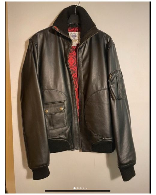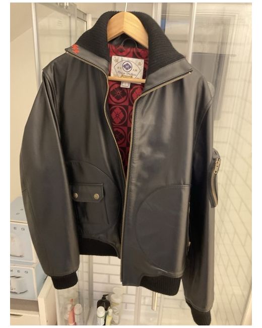 Black leather bomber jacket mens large
