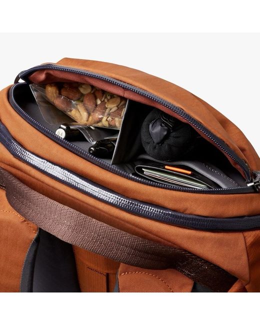 FEATURES Quick-access top pocket with internal organization Padded 16” laptop sleeve, and letter-sized document slip Dropdown front panel for easy packing Hidden external valuables pocket Water-resistant coated zippers Luggage pass-through External water bottle / tripod pocket with adjustable webbing loop Interior stretch mesh pockets Contoured back panel and harness system Adjustable sternum strap Durable nylon fabrics made from recycled materials Main material: Baida Nylon Internal Apple AirTag slip pocket -