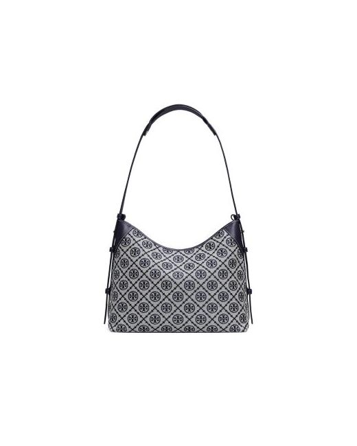 Tory Burch T Monogram Medium Shoulder Bag.Color:Tory Navy.Material:Main: 56% cotton/44% polyester; lining: 50% polyurethane/50% polyamide.Handbags & Wallets.