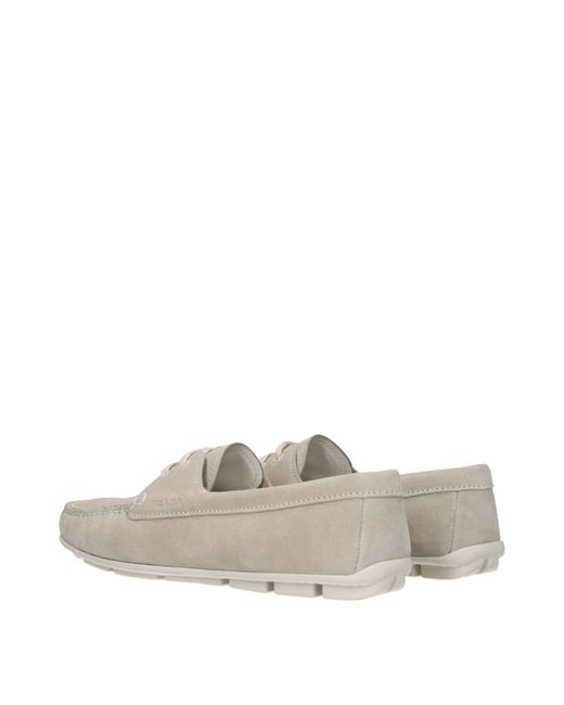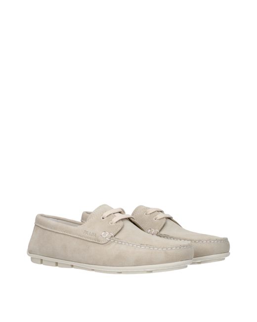 Description: The product with MPN 1DD078054005F0D32 and code F81028 suede in gray is a loafers designed by Prada. It has features like side logo. Additional Info: Style: Casual Closing type: Lace up Closure Shoe sole: Rubber Shoe tip: Round toe Heel type: Low and flat Secondary color: Pumice MPN: 1DD078054005F0D32 New collection: No