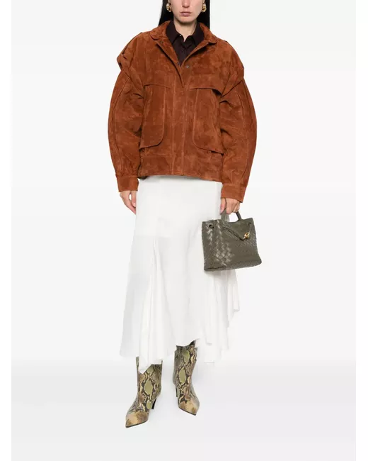 brown suede puffed long sleeves front concealed press-stud fastening