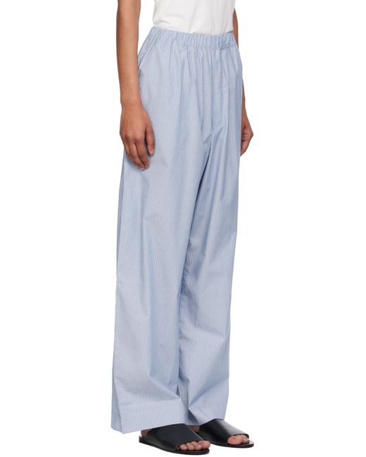 Organic cotton poplin lounge pants. · Certified GOTS, OEKO-TEX®, and OCS 100 · Stripes throughout · Elasticized waistband · Two-pocket styling · Mock fly Supplier color: Blue stripe