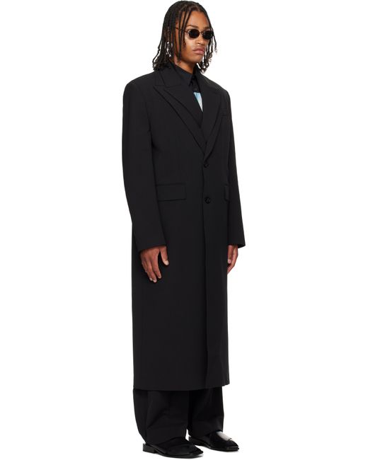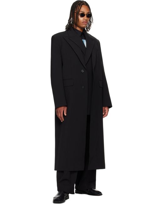 Stretch nylon gabardine coat. · Layered construction · Peaked lapels · Double-breasted button closures · Welt pocket at chest · Flap pockets at waist · Padded shoulders · Buttoned surgeon's cuffs · Locker loop at back collar · Central vent at back hem · Welt pockets at interior · Full satin twill lining · Logo-engraved horn hardware Supplier color: Black