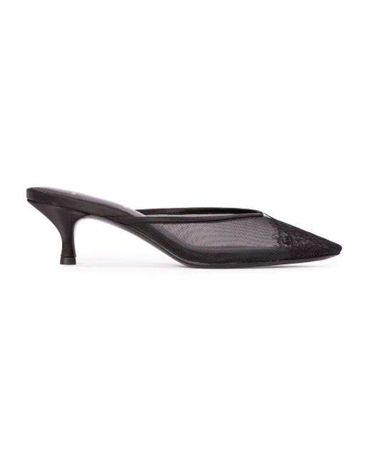 Pointy toe slip on mules, set on a curved kitten heels. Made with satin crepe. Heel Height: 50mm / 2 inches Upper: Leather - Sock: mesh - Lining: Leather - Sole: Leather Imported. Lsd Shoes - Shoes Lsd Mp > Black Suede Studio > Saks Fifth Avenue > Barneys. Black Suede Studio. Color: Black Mesh. Size: 6.