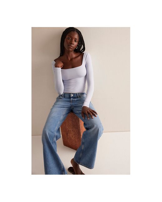 A soft and seamless essential, this go-to long sleeve features a square neckline and formfitting silhouette. **Fit:** Formfitting, fitted sleeves, slightly cropped **Features:** Soft fabrication, seamless design, square neckline **Why We Clean Lines Long Sleeve by Intimately at Free People in Clouded, Size: XS/S