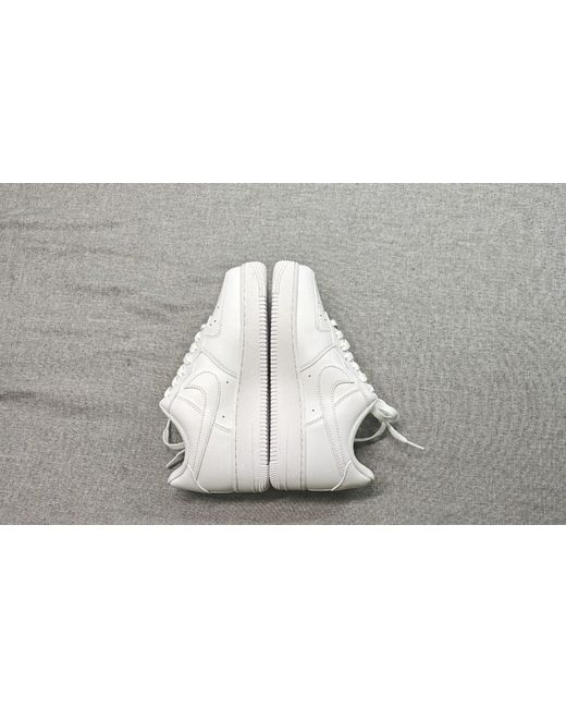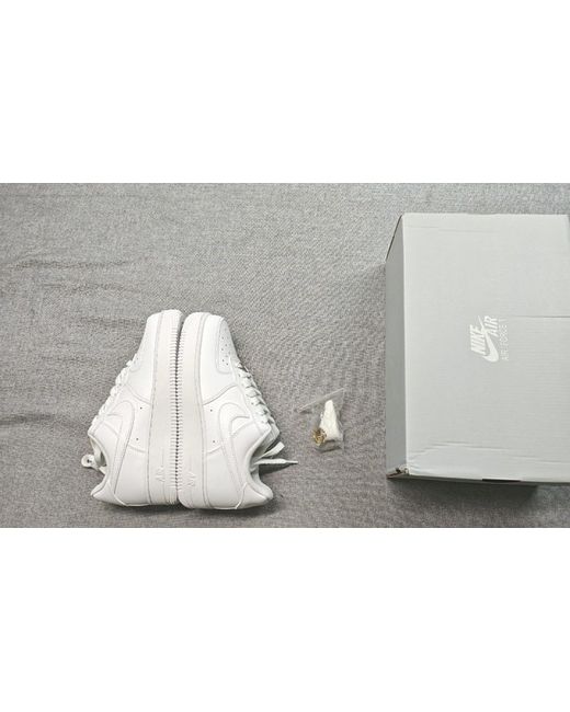 This product is a white Nike Air Force 1 in UK size 6, specifically designed for women. The shoes feature a lace-up closure, rubber cleat type, and leather upper material. With accents of the Nike logo, these trainers are suitable for both summer and spring seasons, offering comfort and a standard shoe width. The sneaker style and Nike Air Force product line make them a stylish and versatile choice for everyday wear.