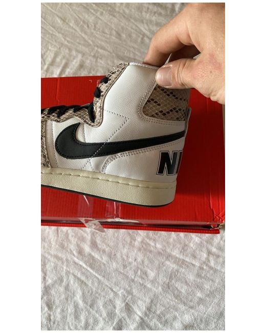 Elevate your sneaker game with the Nike Terminator High Cocoa Snake trainers, a genuine fusion of style and comfort. These unisex adult sneakers feature an eye-catching white, black, sail, and cocoa colourway, with the iconic snake print that makes them a standout piece. The high top shoe shaft ensures a supportive fit, while the premium leather upper offers durability and a luxurious feel. Crafted for the contemporary sneaker enthusiast, these trainers are part of the 2022 Nike Terminator product line and boast a sleek design that's as suitable for casual wear as for more athletic pursuits. The size UK 5.5 sneakers are a testament to Nike's commitment to quality and design, ensuring that every step taken is supported by excellence.
