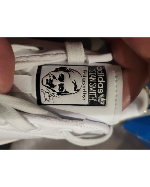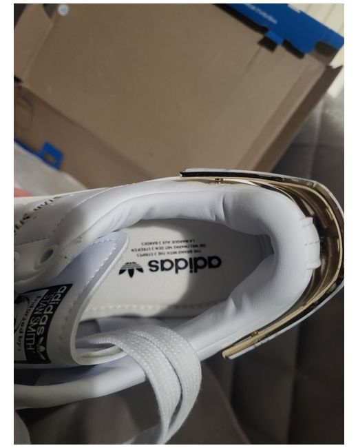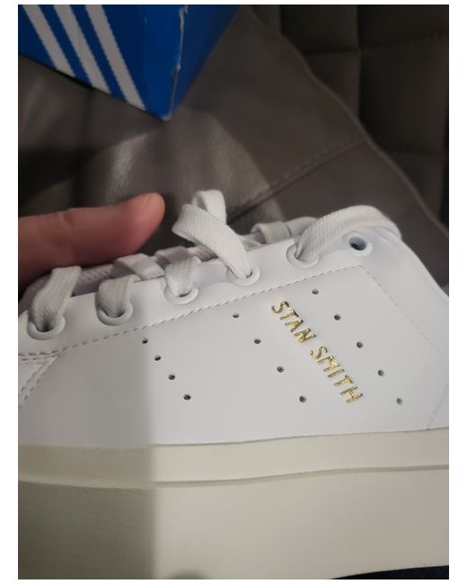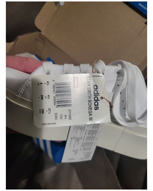 These are women's adidas Stan Smith Bonega trainers in white, UK shoe size 4.5. The sneakers have a classic style and are suitable for casual wear. Ordianlly box but is damaged in transit so not 100%