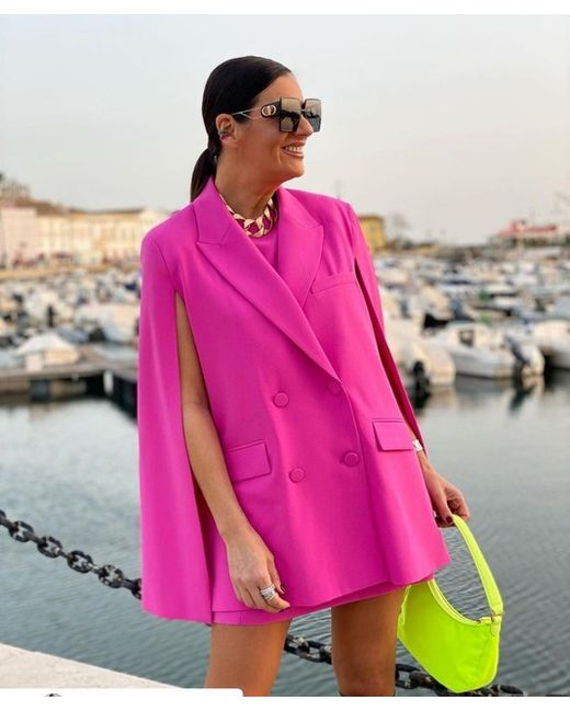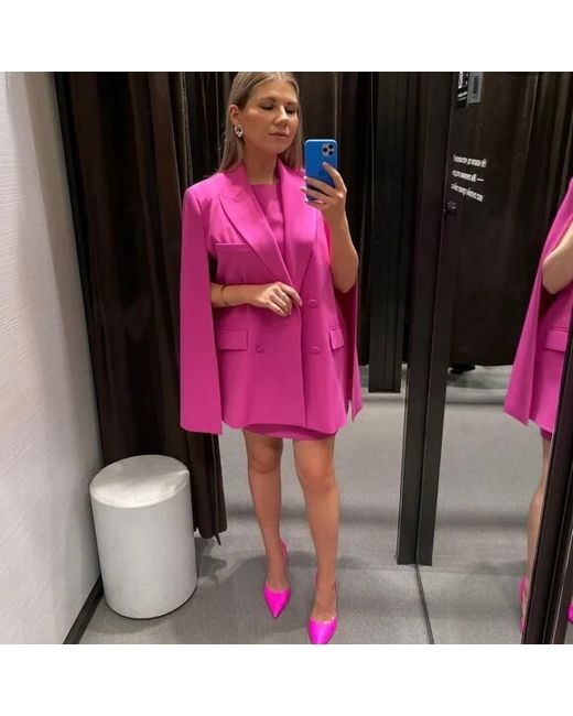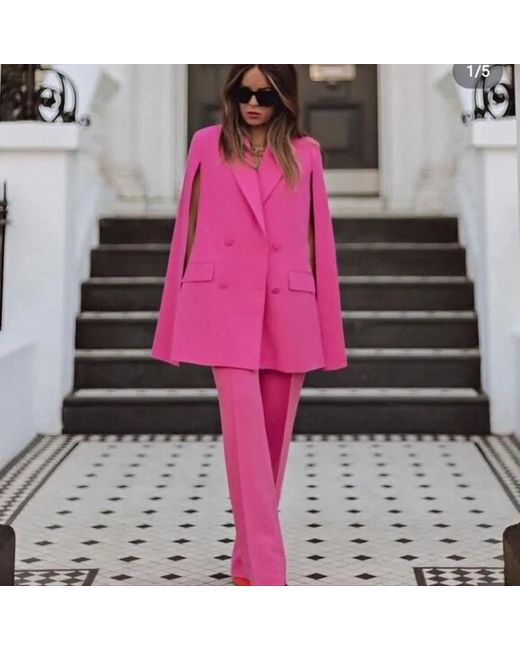 100% AUTHENTIC ZARA COLLECTION REF: 2481/707. PINK DOUBLE-BREASTED CAPE BLAZER JACKET WITH POCKETS. Pink cape blazer with lapel collar and long sleeves with cape-style cut-out detail. Front flap pockets and chest welt pocket.