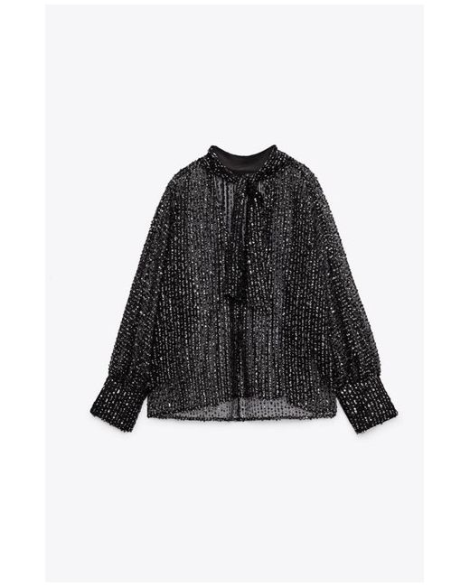 Lovely black sequin blouse from Zara with bow at neck great for the upcoming party season. BNWT in M