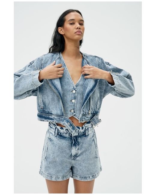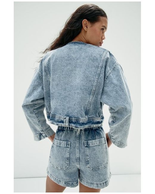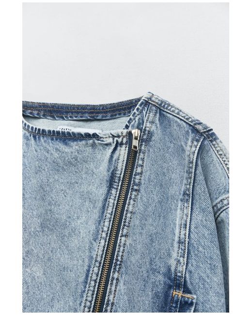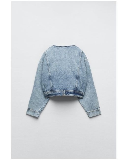 100% AUTHENTIC ZARA COLLECTION REF: 6164/109. LIGHT BLUE WASHED EFFECT CROPPED DENIM JACKET. Cropped denim jacket with a round neck. Long sleeves with zip closure. Front welt pockets. Zip-up front.