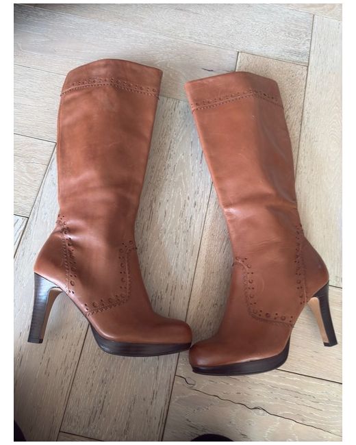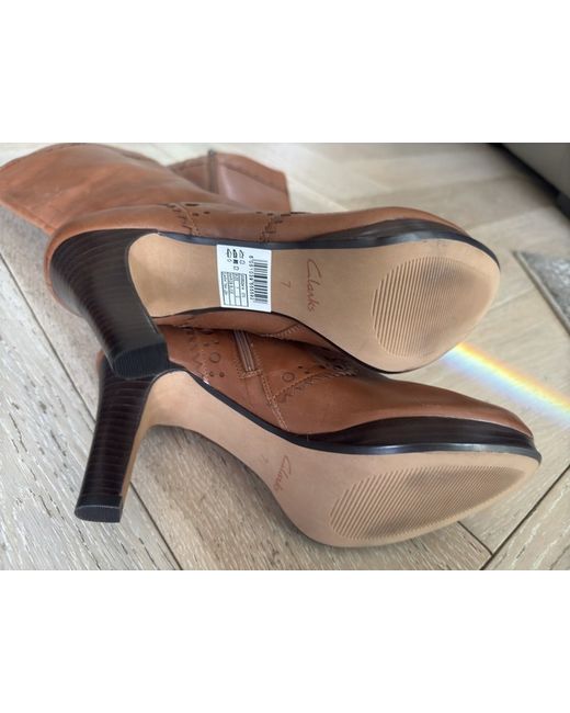gorgeous pair of brand-new women’s Clark leather tan boots never worn size UK7D colour dark tan Gorgeous design beautiful with slight platform very comfortable please note few scratches on but that’s the type of leather. Hence the price Absolutely amazing pair of boots purchased at £100 grab a bargain.