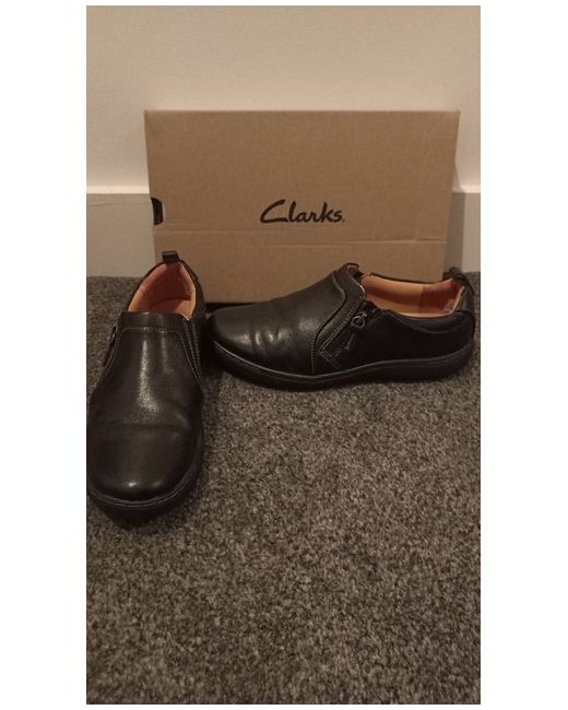 This pair of women's shoes by Clarks is designed to provide both comfort and style. The shoes come in UK size 7.5 / US size 8 / EU size 41.5 / AU size 7.5 and feature a round toe and moccasin style. The upper material is made of leather, while the lining and insole are also made of leather for added comfort. The shoes have an E width and a rubber outsole. The colour is black and the shoes are not vintage or customised.
