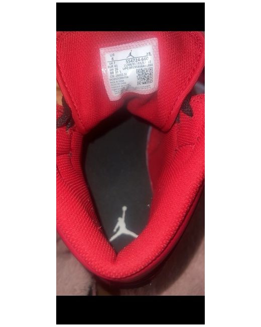 The red Jordan 1s UK7 is a stylish sneaker for women, featuring a classic lace-up closure and a durable rubber outsole. Made with leather and showcasing the iconic Air Jordan logo, these trainers are perfect for casual occasions during the summer season. With a standard shoe width and a vibrant red colour, these sneakers are a fashionable addition to any wardrobe for those who appreciate the Air Jordan brand.