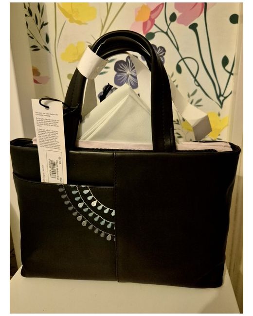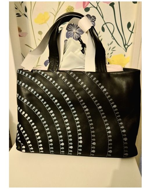 Women's Blue Medium Sized Black Grab Bag With Stitching BNWT