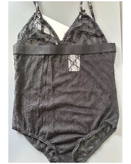 PRODUCT DESCRIPTION The Gucci bodysuit trend is here to stay - this strappy bodysuit featuring mesh logo has you covered if you want to swap tops for this chic body-hugging piece. For a night out team this with coated jeggings & strappy high heels. Brand New With Tags Adjustable straps Strappy bodysuit Snap button closure Mesh logo Regular Fit Size Large UK: 12 Colour: Black 88% polyester 12% elastane lining 100% polyester