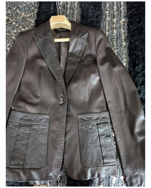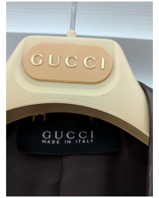 Elevate your wardrobe with this vintage Gucci leather jacket, crafted from high-quality leather in a classic brown hue. This jacket is a must-have for any fashion-forward woman, with its basic style and regular size type making it perfect for everyday wear. The jacket features a Gucci brand logo, adding a touch of luxury to your outfit. Ideal for any occasion, this jacket is perfect for layering over your favourite clothes. Whether you're dressing up for a night out or keeping it casual, this jacket will add a touch of elegance to your outfit. Don't miss out on the chance to own this timeless piece.