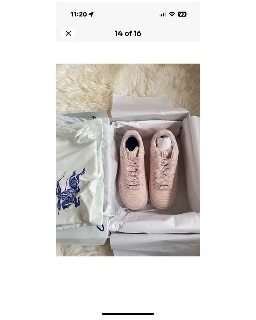 The Burberry Box checked sneakers in size 38 are a stylish and fashionable choice for women. Featuring the iconic Burberry Check pattern in CAMEO IP CHECK colour, these trainers are perfect for casual wear or even boxing activities. Made by the luxury brand Burberry, these sneakers combine comfort and style to create a versatile addition to any wardrobe. Bought on here and authenticated by ebay , slightly too big for the wife , brand new in bags and box