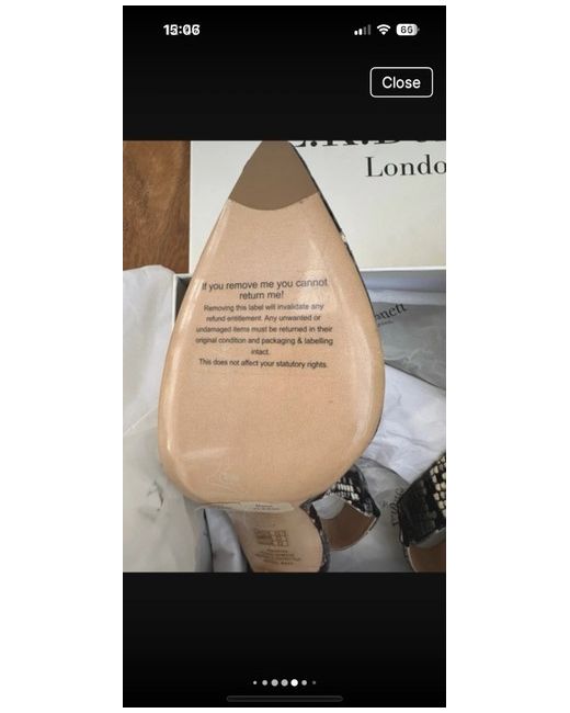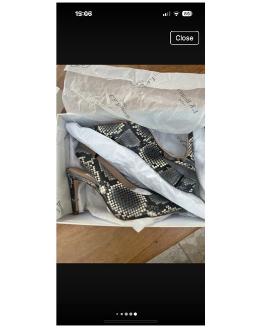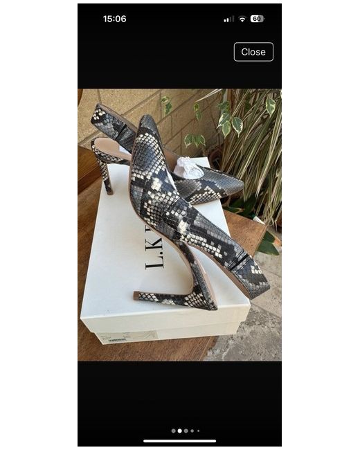 Brand New , Unworn with protective covers still on soles & in Original box L.K. Bennett Grey Snake Print Leather Sling Back heels. Shoe size 37/4 UK . Stiletto Heels 10cm Wide elasticated back strap 100% leather uppers , linings & soles Beautiful elegant and stylish heels Cost £195 sadly have never worn