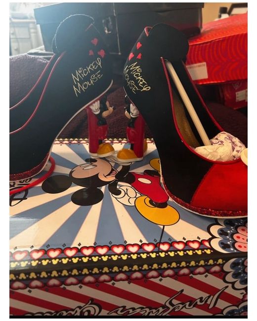 The Irregular Choice Mickey Mouse heels in size 6 are a glamorous addition to any woman's wardrobe. With a round toe shape and a high heel, these black court shoes are perfect for parties and cocktails. The synthetic upper and insole provide comfort and durability, while the concept heel design adds a touch of uniqueness. These stylish heels featuring Mickey Mouse are sure to make a statement in the summer season. Concept Mickey Mouse Character Heel Size 6 Never Worn Gorgeous Unique Shoes Boxed