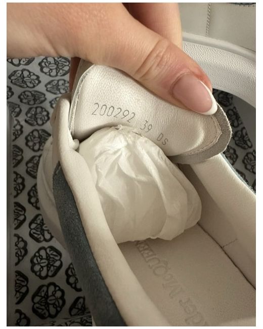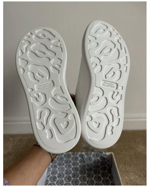 £460 online. Just want these gone they aren’t mine and are taking up space in my dressing room. The Alexander McQueen Women's Oversized Trainers in size 6 are a stylish and comfortable option for casual wear. These white leather trainers feature a low top shoe shaft style with a lace-up closure, making them easy to slip on and off. The oversized design adds a trendy touch to the sneakers, while the leather upper and insole materials provide a luxurious feel. Perfect for any season, these trainers are a designer piece that will elevate any outfit.
