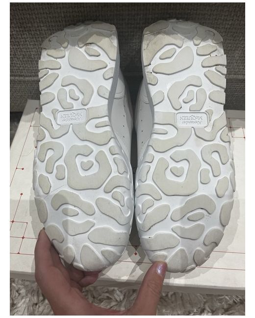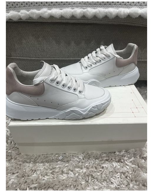 *PLEASE NOTE THEY HAVE BEEN WORN BUT ONLY FOR A COUPLE HOURS AND ARE GOOD AS NEW. Been stored in box whole time too. Shoes state size 4.5 but fit more like a 4. Still selling on websites for £395 Worn once only and only for a few hours. Literally no sign of wear at all. Box has a few marks on it though, as shown in photos. Description: Elevate any ensemble with the Alexander McQueen Oversized Court Trainers. Complete with the signature print logo on the tongue and heel for instant brand recognition and a high-end appeal. From casual days out to weekends with friends, these shoes are the perfect piece. Product Highlights: - The almond toe creates a timeless silhouette. - Embrace comfort with the padded tongue. - Composition: Upper: Leather. Lining: Leather. Sole: Rubber.