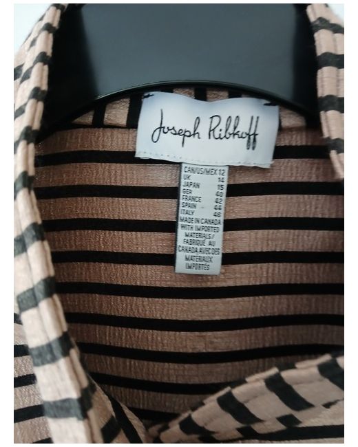 The Beautiful Joseph Ribkoff Jacket in black and gold is a stylish and lightweight garment perfect for a party or cocktail occasion. With a short length, button closure, and polyester lining, this jacket is designed for comfort and sophistication. Made in Canada, this basic jacket is a size 14, ideal for women looking for a chic and trendy outerwear option for the spring season. Hand wash only to maintain the quality of this fashionable piece from the renowned brand Joseph Ribkoff.
