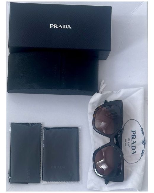 PRADA. PR 24XS rectangle-frame sunglasses. Barely worn. Tiny scratch on left lens of sunglass. Box quite battered from being in storage. Lens cloths included. RRP £213.