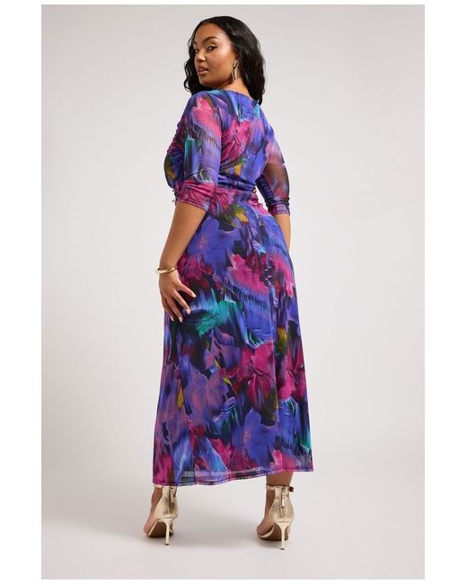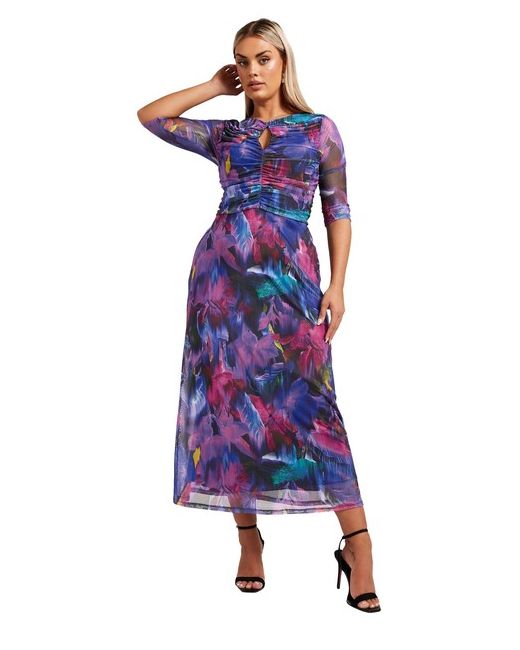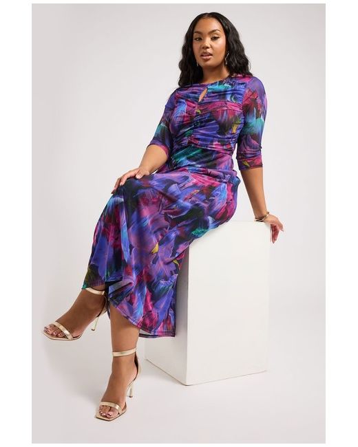 Women's Curve Plus Tropical Print Keyhole Mesh Dress
