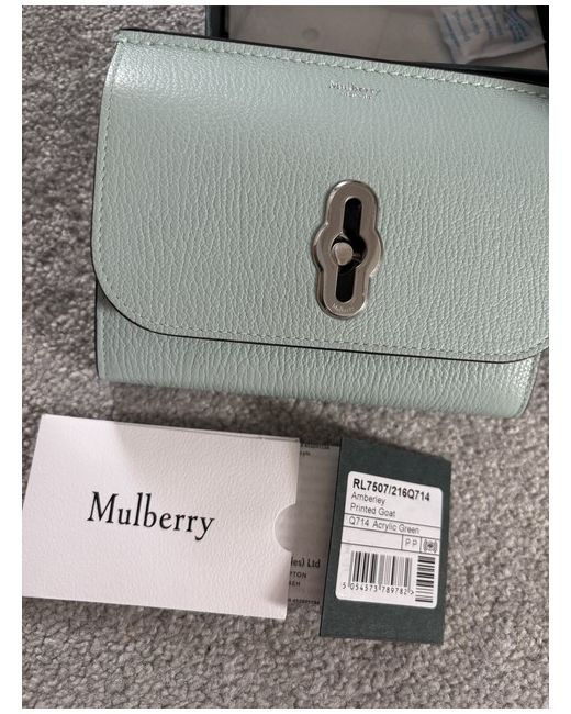 The Mulberry Small Purse is a stylish wallet made from luxurious leather in a light green colour. This zip-around purse is designed for women and features credit card slots for easy organization. With its sleek design and high-quality material, this Mulberry purse is the perfect accessory for any fashion-forward individual looking for a chic and practical accessory. Made in China, this purse is a timeless piece that exudes sophistication and elegance.